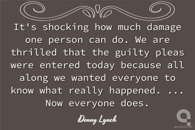 It's shocking how much damage one person can do. We are thrilled that the guilty pleas were entered today because all along we wanted everyone to know what really happened. ... Now everyone does.
