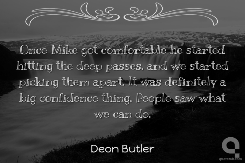 Once Mike got comfortable he started hitting the deep passes, and we started picking them apart. It was definitely a big confidence thing. People saw what we can do.