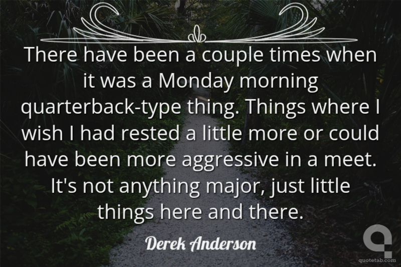 There have been a couple times when it was a Monday morning quarterback-type thing. Things where I wish I had rested a little more or could have been more aggressive in a meet. It's not anything major, just little things here and there.