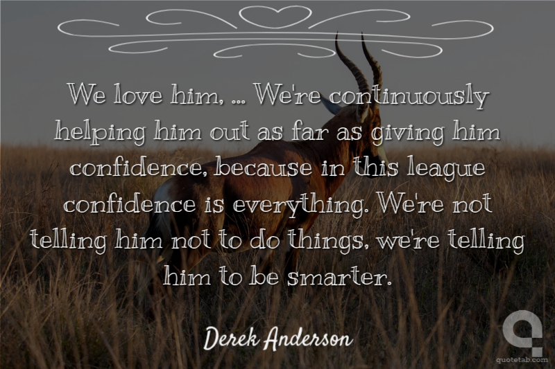 We love him, ... We're continuously helping him out as far as giving him confidence, because in this league confidence is everything. We're not telling him not to do things, we're telling him to be smarter.