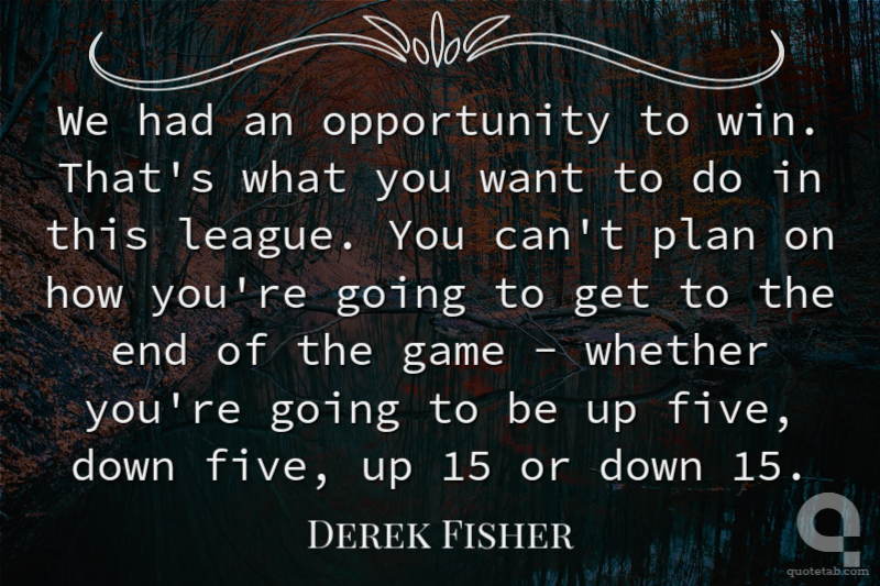 We had an opportunity to win. That's what you want to do in this league. You can't plan on how you're going to get to the end of the game - whether you're going to be up five, down five, up 15 or down 15.