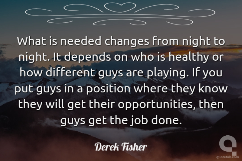 What is needed changes from night to night. It depends on who is healthy or how different guys are playing. If you put guys in a position where they know they will get their opportunities, then guys get the job done.
