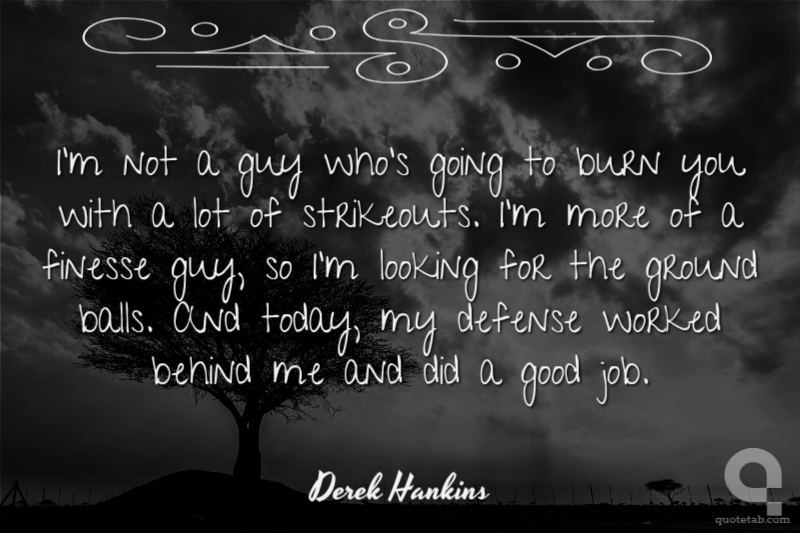 I'm not a guy who's going to burn you with a lot of strikeouts. I'm more of a finesse guy, so I'm looking for the ground balls. And today, my defense worked behind me and did a good job.