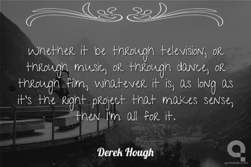 Whether it be through television, or through music, or through dance, or through film, whatever it is, as long as it's the right project that makes sense, then I'm all for it.