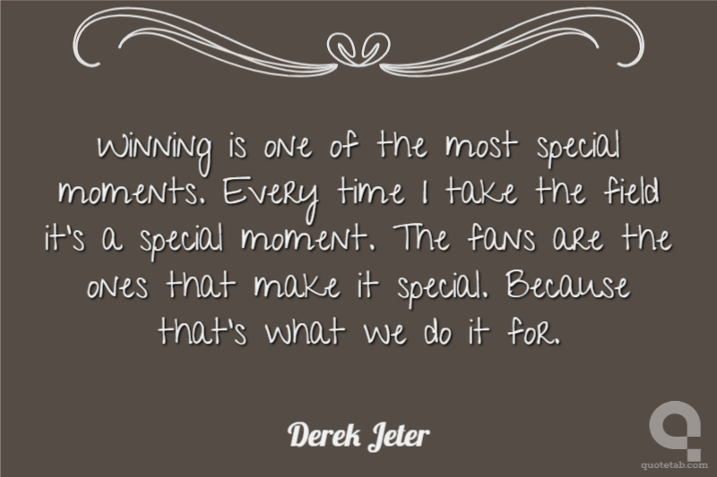 Winning is one of the most special moments. Every time I take the field it's a special moment. The fans are the ones that make it special. Because that's what we do it for.