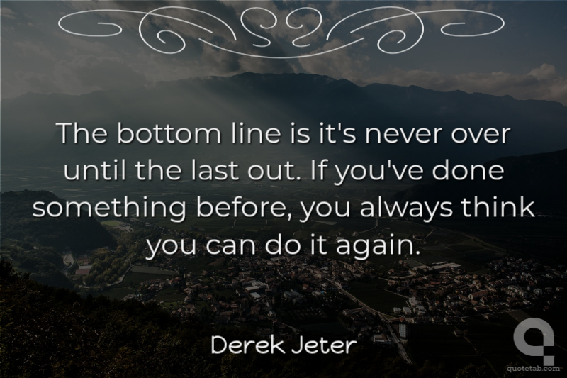 The bottom line is it's never over until the last out. If you've done something before, you always think you can do it again.
