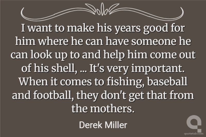 I want to make his years good for him where he can have someone he can look up to and help him come out of his shell, ... It's very important. When it comes to fishing, baseball and football, they don't get that from the mothers.