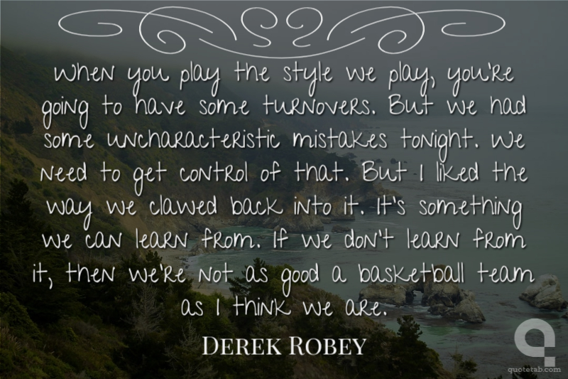 When you play the style we play, you're going to have some turnovers. But we had some uncharacteristic mistakes tonight. We need to get control of that. But I liked the way we clawed back into it. It's something we can learn from. If we don't learn from it, then we're not as good a basketball team as I think we are.