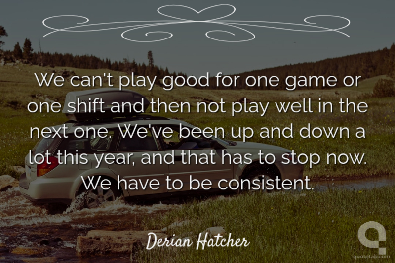 We can't play good for one game or one shift and then not play well in the next one. We've been up and down a lot this year, and that has to stop now. We have to be consistent.