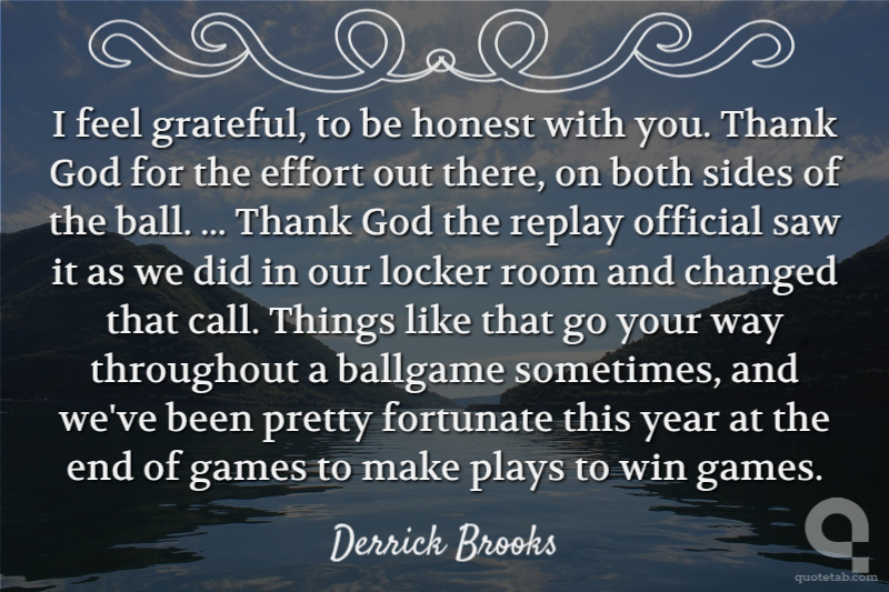 I feel grateful, to be honest with you, ... Thank God for the effort out there, on both sides of the ball. ... Thank God the replay official saw it as we did in our locker room and changed that call. Things like that go your way throughout a ballgame sometimes, and we've been pretty fortunate this year at the end of games to make plays to win games.