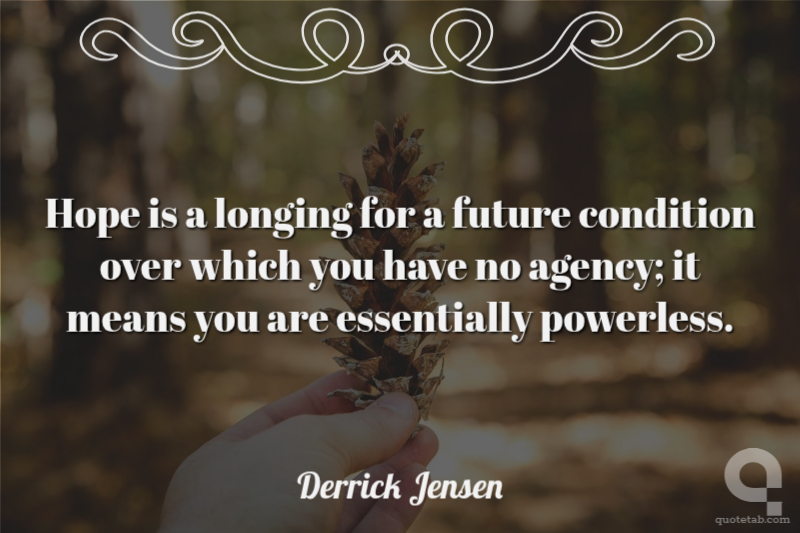 Hope is a longing for a future condition over which you have no agency; it means you are essentially powerless.