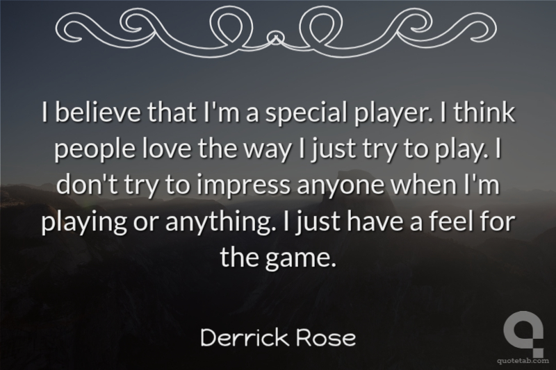 I believe that I'm a special player. I think people love the way I just try to play. I don't try to impress anyone when I'm playing or anything. I just have a feel for the game.