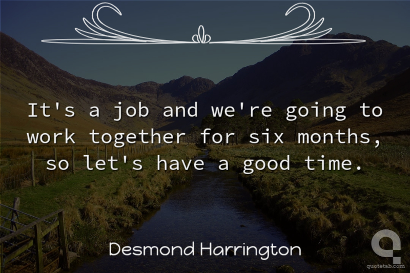 It's a job and we're going to work together for six months, so let's have a good time.