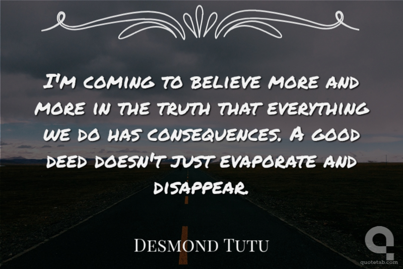I'm coming to believe more and more in the truth that everything we do has consequences. A good deed doesn't just evaporate and disappear.
