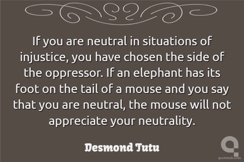 If you are neutral in situations of injustice, you have chosen the side of the oppressor. If an elephant has its foot on the tail of a mouse and you say that you are neutral, the mouse will not appreciate your neutrality.
