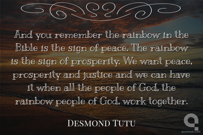 And you remember the rainbow in the Bible is the sign of peace. The rainbow is the sign of prosperity. We want peace, prosperity and justice and we can have it when all the people of God, the rainbow people of God, work together.