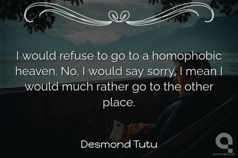 I would refuse to go to a homophobic heaven. No, I would say sorry, I mean I would much rather go to the other place.
