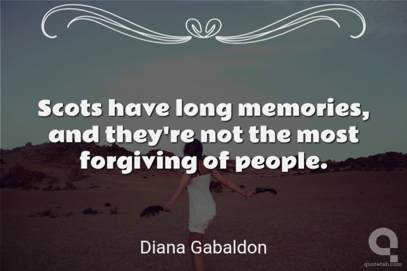 Jamie," I said, "how, exactly, do you decide whether you're drunk?" Aroused by my voice, he swayed alarmingly to one side, but caught himself on the edge of the mantelpiece. His eyes drifted around the room, then fixed on my face. For an instant, they blazed clear and pellucid with intelligence. "och, easy, Sassenach, If ye can stand up, you're not drunk." He let go of the mantelpiece, took a step toward me, and crumpled slowly onto the hearth, eyes blank, and a wide, sweet smile on his dreaming face.