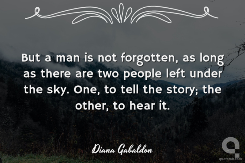 But a man is not forgotten, as long as there are two people left under the sky. One, to tell the story; the other, to hear it.
