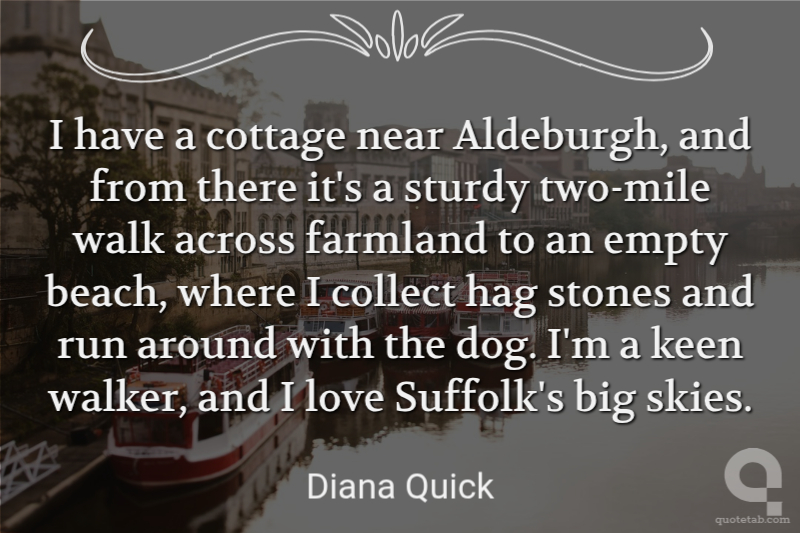 I have a cottage near Aldeburgh, and from there it's a sturdy two-mile walk across farmland to an empty beach, where I collect hag stones and run around with the dog. I'm a keen walker, and I love Suffolk's big skies.