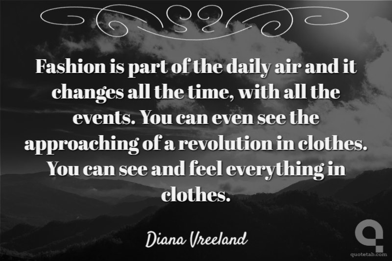 Fashion is part of the daily air and it changes all the time, with all the events. You can even see the approaching of a revolution in clothes. You can see and feel everything in clothes.