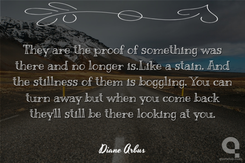 They are the proof of something was there and no longer is.Like a stain. And the stillness of them is boggling. You can turn away but when you come back they'll still be there looking at you.