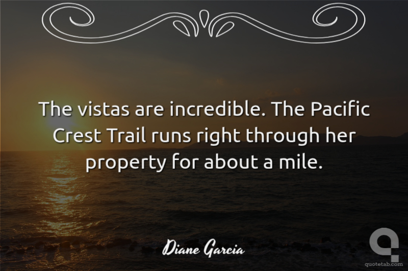 The vistas are incredible. The Pacific Crest Trail runs right through her property for about a mile.