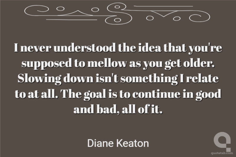I never understood the idea that you're supposed to mellow as you get older. Slowing down isn't something I relate to at all. The goal is to continue in good and bad, all of it.