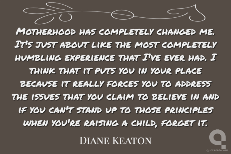 Motherhood has completely changed me. It's just about like the most completely humbling experience that I've ever had. I think that it puts you in your place because it really forces you to address the issues that you claim to believe in and if you can't stand up to those principles when you're raising a child, forget it.