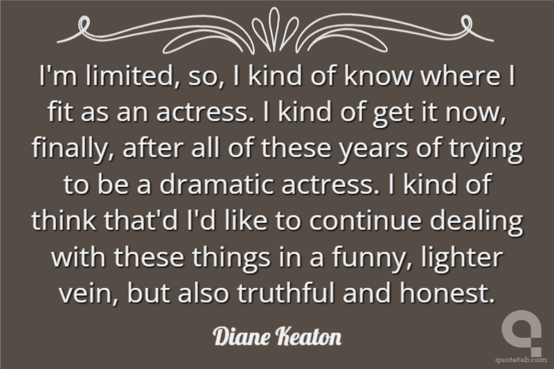I'm limited, so, I kind of know where I fit as an actress. I kind of get it now, finally, after all of these years of trying to be a dramatic actress. I kind of think that'd I'd like to continue dealing with these things in a funny, lighter vein, but also truthful and honest.