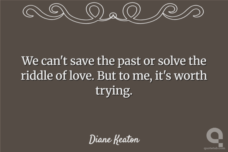 We can't save the past or solve the riddle of love. But to me, it's worth trying.