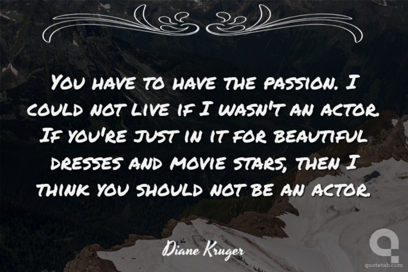 You have to have the passion. I could not live if I wasn't an actor. If you're just in it for beautiful dresses and movie stars, then I think you should not be an actor.