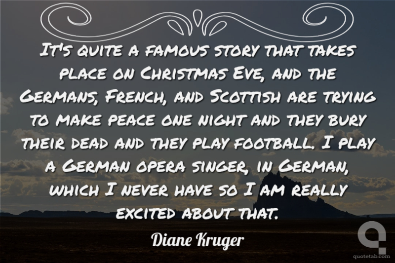 It's quite a famous story that takes place on Christmas Eve, and the Germans, French, and Scottish are trying to make peace one night and they bury their dead and they play football. I play a German opera singer, in German, which I never have so I am really excited about that.