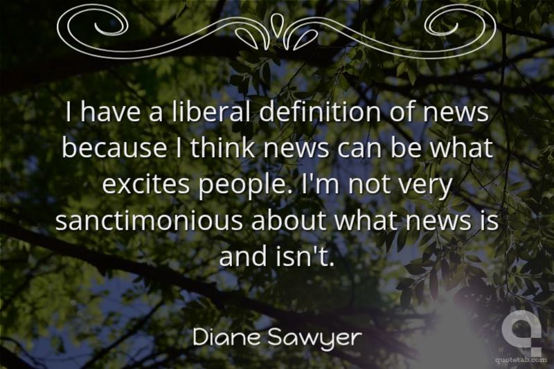 I have a liberal definition of news because I think news can be what excites people. I'm not very sanctimonious about what news is and isn't.