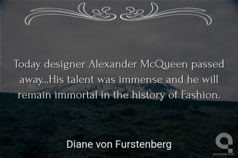 Today designer Alexander McQueen passed away...His talent was immense and he will remain immortal in the history of Fashion.