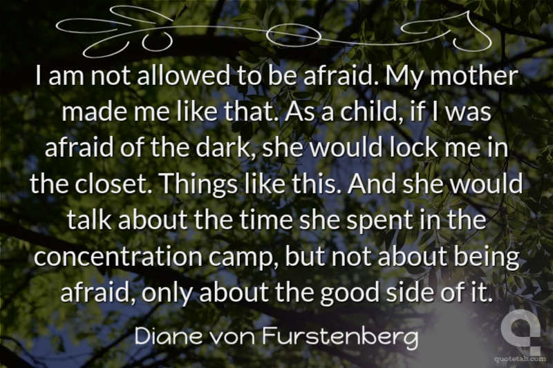 I am not allowed to be afraid. My mother made me like that. As a child, if I was afraid of the dark, she would lock me in the closet. Things like this. And she would talk about the time she spent in the concentration camp, but not about being afraid, only about the good side of it.