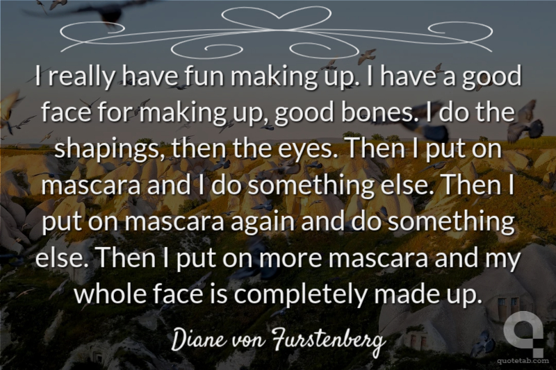 I really have fun making up. I have a good face for making up, good bones. I do the shapings, then the eyes. Then I put on mascara and I do something else. Then I put on mascara again and do something else. Then I put on more mascara and my whole face is completely made up.