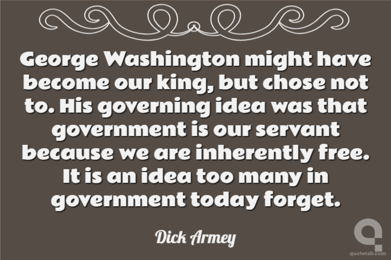George Washington might have become our king, but chose not to. His governing idea was that government is our servant because we are inherently free. It is an idea too many in government today forget.