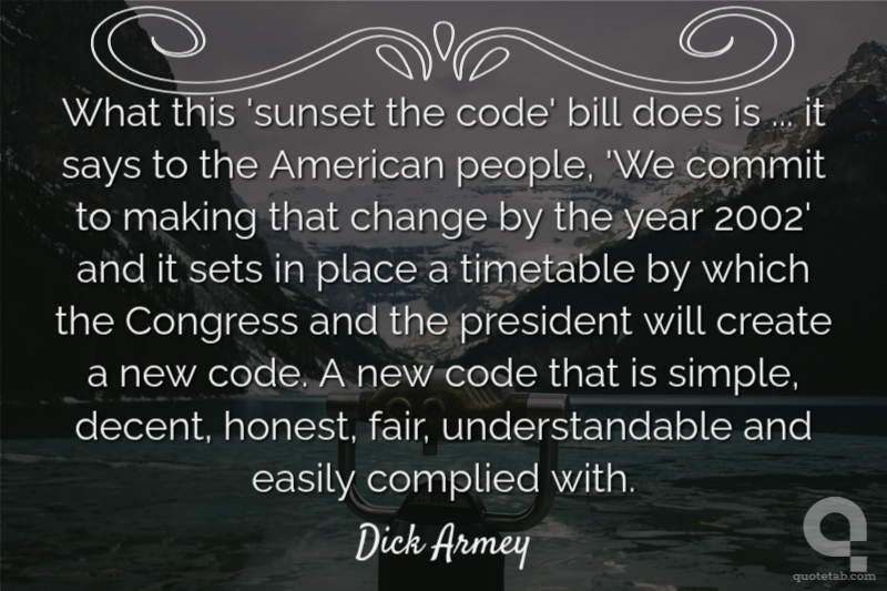 What this 'sunset the code' bill does is ... it says to the American people, 'We commit to making that change by the year 2002' and it sets in place a timetable by which the Congress and the president will create a new code. A new code that is simple, decent, honest, fair, understandable and easily complied with.