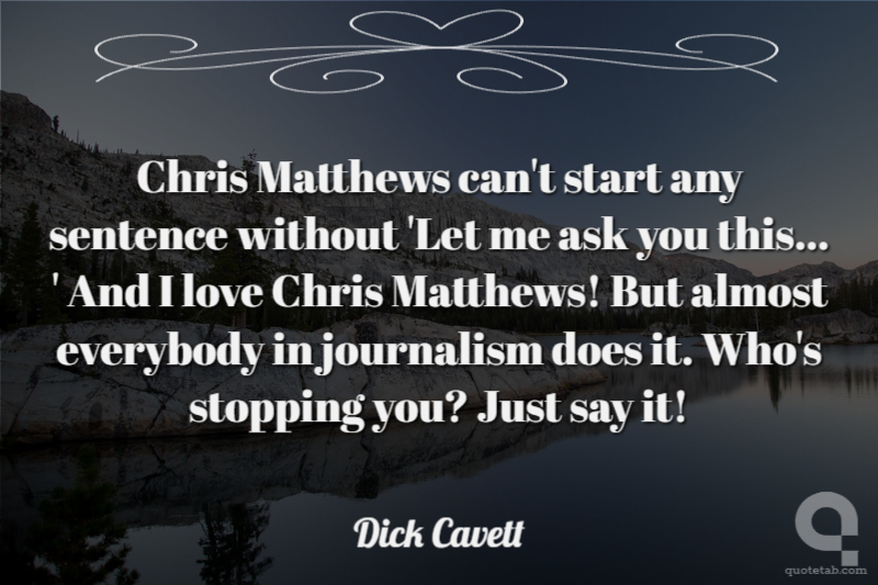 Chris Matthews can't start any sentence without 'Let me ask you this... ' And I love Chris Matthews! But almost everybody in journalism does it. Who's stopping you? Just say it!