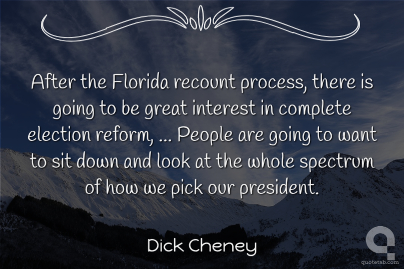 After the Florida recount process, there is going to be great interest in complete election reform, ... People are going to want to sit down and look at the whole spectrum of how we pick our president.