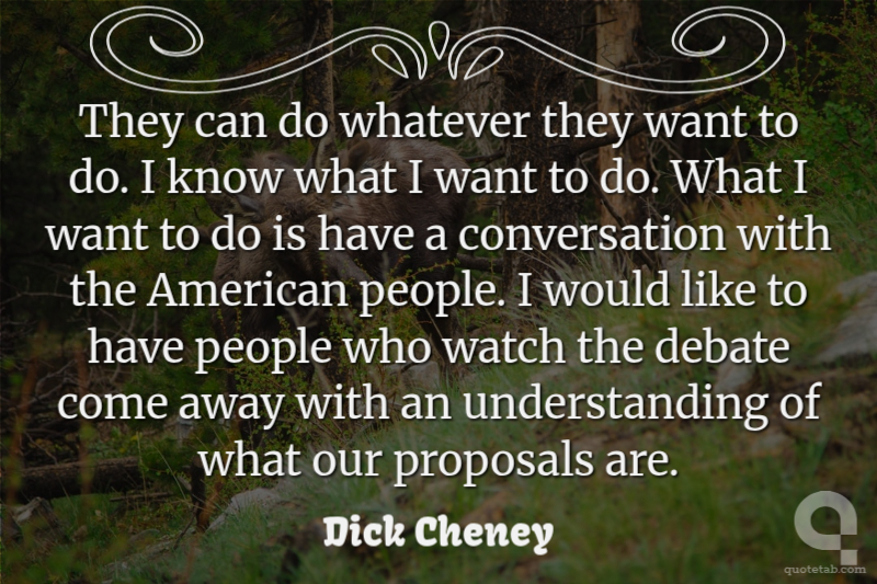 They can do whatever they want to do. I know what I want to do. What I want to do is have a conversation with the American people. I would like to have people who watch the debate come away with an understanding of what our proposals are.