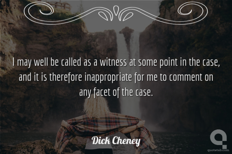 I may well be called as a witness at some point in the case, and it is therefore inappropriate for me to comment on any facet of the case.