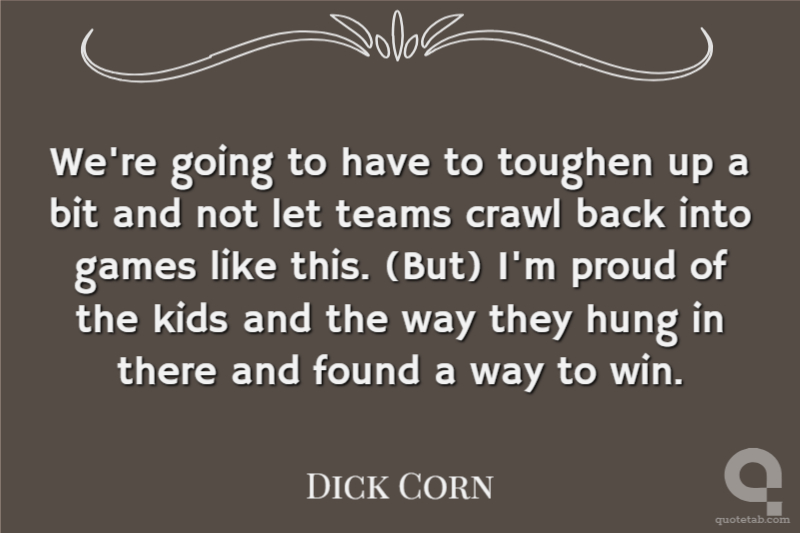 We're going to have to toughen up a bit and not let teams crawl back into games like this. (But) I'm proud of the kids and the way they hung in there and found a way to win.