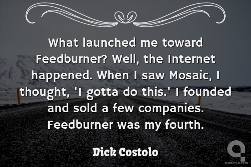 What launched me toward Feedburner? Well, the Internet happened. When I saw Mosaic, I thought, 'I gotta do this.' I founded and sold a few companies. Feedburner was my fourth.