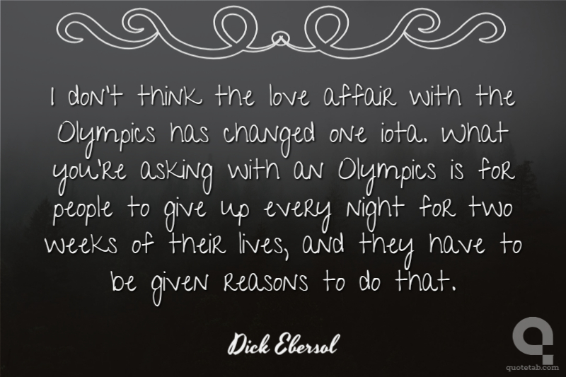 I don't think the love affair with the Olympics has changed one iota. What you're asking with an Olympics is for people to give up every night for two weeks of their lives, and they have to be given reasons to do that.