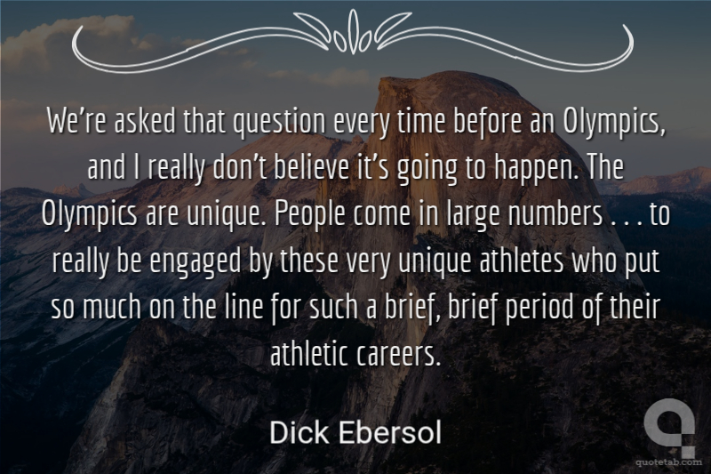 We're asked that question every time before an Olympics, and I really don't believe it's going to happen. The Olympics are unique. People come in large numbers . . . to really be engaged by these very unique athletes who put so much on the line for such a brief, brief period of their athletic careers.