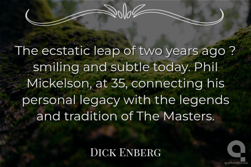 The ecstatic leap of two years ago ? smiling and subtle today. Phil Mickelson, at 35, connecting his personal legacy with the legends and tradition of The Masters.