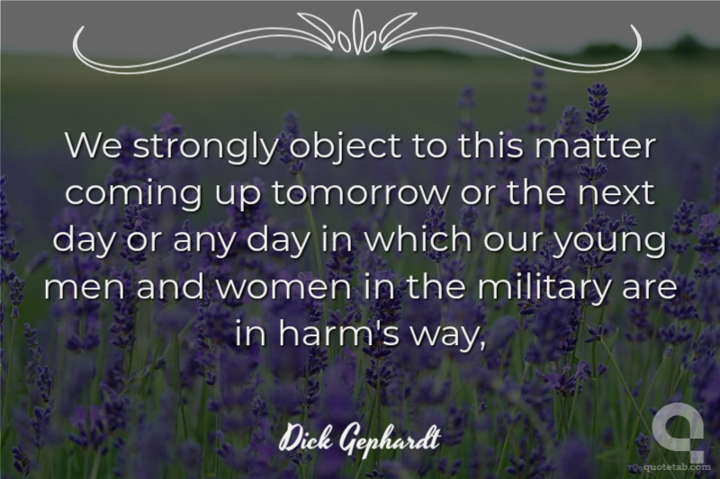 We strongly object to this matter coming up tomorrow or the next day or any day in which our young men and women in the military are in harm's way,