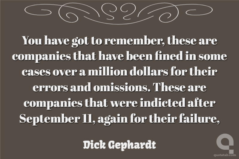 You have got to remember, these are companies that have been fined in some cases over a million dollars for their errors and omissions. These are companies that were indicted after September 11, again for their failure,